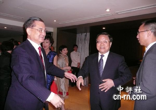 國(guó)民黨榮譽(yù)主席連戰(zhàn)宴請(qǐng)大陸文化部長(zhǎng)蔡武率領(lǐng)的訪問(wèn)團(tuán)。 圖片來(lái)源:香港“中評(píng)社”