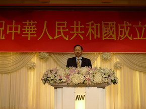 中國(guó)在韓僑民協(xié)會(huì)總會(huì)長(zhǎng)韓晟昊和漢城華僑協(xié)會(huì)會(huì)長(zhǎng)楊從昇分別代表華僑致辭。他們盛贊新中國(guó)成立61年來(lái)所取得的輝煌成就,表示祖國(guó)的發(fā)展?fàn)縿?dòng)著每一位華僑的心,看到祖國(guó)一天天強(qiáng)盛,旅韓華僑真正感到“中國(guó)人站起來(lái)了”,并為此倍感自豪。祖國(guó)是所有海外華人的母親,孝母天經(jīng)地義,愛(ài)國(guó)義不容辭。今天,使館為旅韓中國(guó)同胞舉行國(guó)慶聯(lián)歡會(huì),能夠受邀出席,倍感榮幸,同時(shí)也深切感受到祖國(guó)的日益強(qiáng)盛和對(duì)海外華僑華人的殷切關(guān)懷。旅韓華僑堅(jiān)決支持祖國(guó)維護(hù)主權(quán)和領(lǐng)土完整,衷心祝愿祖國(guó)繁榮昌盛,祝愿中韓關(guān)系不斷發(fā)展。