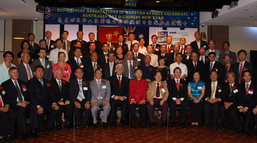 2011年1月21日晚,悉尼西區(qū)三十個(gè)華僑華人社團(tuán)在卡市隆重舉行慶祝澳洲日暨中國(guó)春節(jié)聯(lián)歡晚宴,同時(shí)為澳大利亞昆士蘭州水災(zāi)籌款募捐。駐悉尼總領(lǐng)事胡山、胡小蘭副總領(lǐng)事、多名澳大利亞聯(lián)邦議員、卡市市長(zhǎng)、市議員以及西區(qū)華僑華人共500人出席。