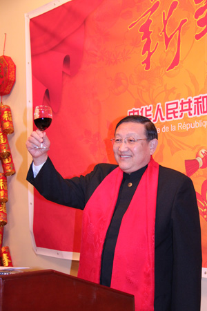 2011年1月25日晚,中國(guó)駐比利時(shí)大使館舉行了2011年新春招待會(huì),張?jiān)h(yuǎn)大使率使館全體外交官與旅居比利時(shí)的華僑華人、留學(xué)生和中資機(jī)構(gòu)代表400多人歡聚一堂,共慶農(nóng)歷辛卯兔年新年。