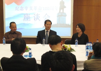 2011年3月30日,駐馬賽總領(lǐng)事宋炳林在總領(lǐng)館舉行紀(jì)念辛亥革命100周年座談會,中國和平統(tǒng)一促進(jìn)會法國南方分會會長陳恩鐸、副會長、馬賽華僑華人會會長傅冠強(qiáng)、秘書長、法國南方華人協(xié)會會長陳剛和各理事,臺法聯(lián)誼會會長郭培芝、馬賽華聯(lián)協(xié)會會長符國瑞、法國南方華人總商會會長陳定國、艾克斯-馬賽第二大學(xué)理學(xué)院院長張承才、國際熱核聚變組織副總干事王紹祺以及中國商檢馬賽分公司代表、馬達(dá)加斯加華人協(xié)會、馬賽儂族協(xié)會、馬賽華人總會、馬賽學(xué)聯(lián)代表近30人出席座談會。