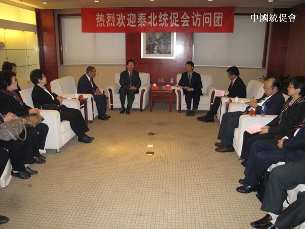 10月25日,中國(guó)和平統(tǒng)一促進(jìn)會(huì)執(zhí)行副秘書(shū)長(zhǎng)杭元祥與泰國(guó)泰北地區(qū)中國(guó)和平統(tǒng)一促進(jìn)會(huì)訪問(wèn)團(tuán)舉行座談,座談會(huì)由中國(guó)統(tǒng)促會(huì)副秘書(shū)長(zhǎng)傅鐵生主持,副秘書(shū)長(zhǎng)鄭琴參加。