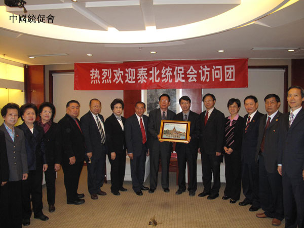 訪問(wèn)團(tuán)向中國(guó)統(tǒng)促會(huì)贈(zèng)送紀(jì)念品