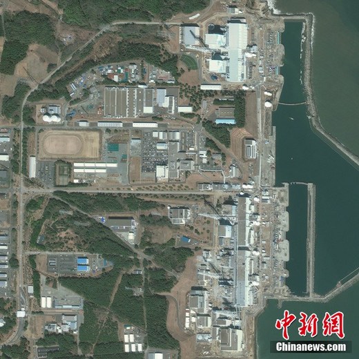 3月18日(當(dāng)?shù)貢r(shí)間上午10時(shí)03分)拍攝的衛(wèi)星照片顯示的是日本福島第一核電站。