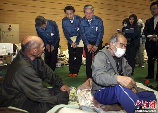 東京電力株式會(huì)社副社長(zhǎng)鼓紀(jì)男22日前往福島縣田村市綜合體育館,向正在這里避難的600多名福島第一核電站周邊居民道歉。自福島第一核電站發(fā)生事故以來,這是東京電力方面首次當(dāng)面向核電站周邊居民致歉。鼓紀(jì)男表示,對(duì)于本次核事故,“東京電力有責(zé)任”。