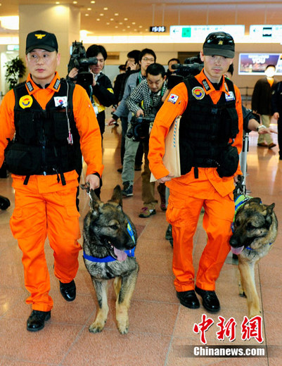 北京時間3月11日13點46分,日本本州島附近海域發(fā)生里氏9.0級強烈地震,震中位于宮城縣以東太平洋海域,震源深度10公里,東京有強烈震感。圖為韓國國際救援隊從首爾機場啟程飛往日本。