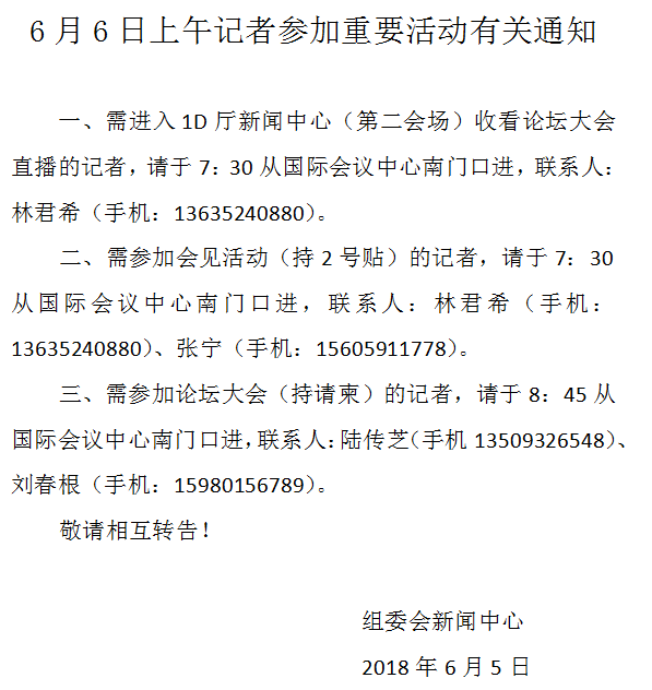 6月6日上午記者參加重要活動(dòng)有關(guān)通知