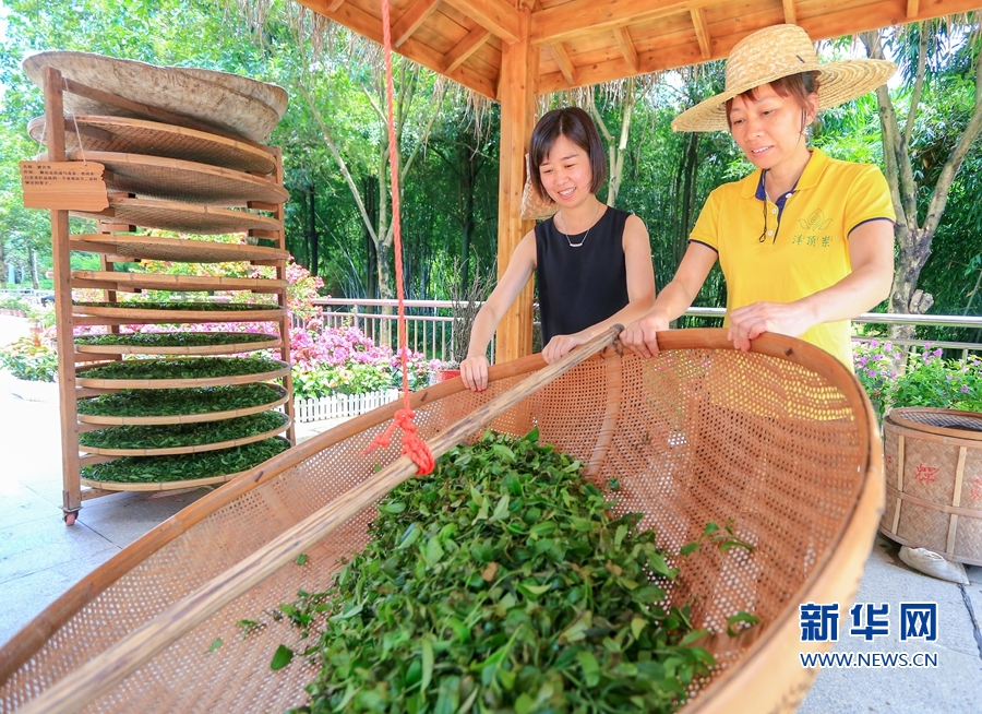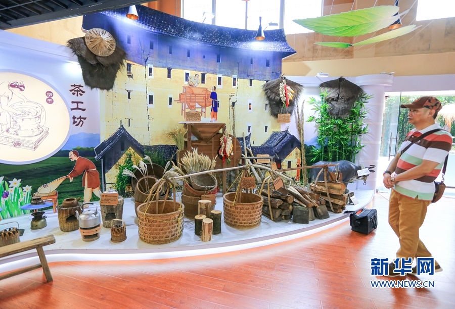 6月14日,茶文化體驗(yàn)館,制茶師向公眾和客商展示傳統(tǒng)制茶工藝。新華網(wǎng) 肖和勇 攝
