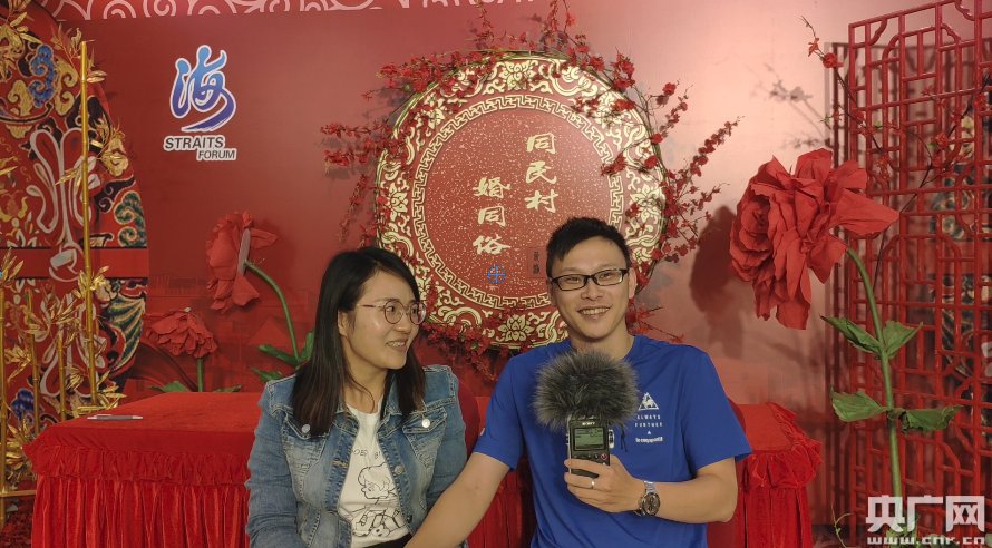 本場(chǎng)活動(dòng)共有12對(duì)同名(同宗)村的夫妻參加,其中大陸1對(duì),臺(tái)灣10對(duì),還有1對(duì)為兩岸婚姻家庭。來自臺(tái)灣臺(tái)南的小伙傅彥霖,四年前到福建工作,認(rèn)識(shí)了漳州姑娘黃藝超,他倆將在下下周舉辦婚禮,傅彥霖說此次參加海峽論壇“同名村 婚同俗”活動(dòng),對(duì)他倆有特別的紀(jì)念意義。