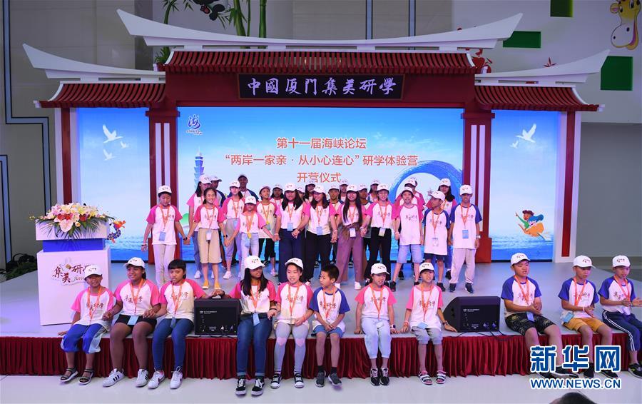 6月14日,兩岸小朋友在開幕式上共同演唱歌曲《我們都是一家人》。當(dāng)日,第十一屆海峽論壇“兩岸一家親·從小心連心”研學(xué)體驗營在福建廈門開營,來自兩岸的青少年將在三天的時間里,在研學(xué)總部同吃、同住、同玩、同交流、同分享。 新華社記者 林善傳 攝