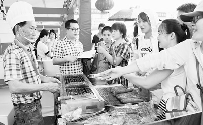 6月11日至15日,兩岸特色廟會在廈門海滄市民文化廣場舉辦。廟會設(shè)210個攤位,臺灣商家的攤位有170個。廟會還設(shè)10個青年創(chuàng)客攤位,給兩岸青年創(chuàng)客搭建了展示平臺。圖為來自臺北的一個攤位。