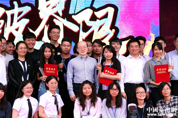 中共中央臺(tái)辦、國務(wù)院臺(tái)辦主任劉結(jié)一與參賽團(tuán)隊(duì)合影留念。(中國臺(tái)灣網(wǎng) 尹賽楠 攝)