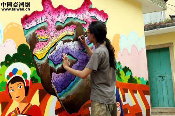 兩天前,海峽論壇首屆創(chuàng)意涂鴉大獎(jiǎng)賽在這里拉開了帷幕,經(jīng)過48小時(shí)的奮發(fā)“涂墻”,屋舍墻壁上的幾幅作品已初見雛形,古老的村落正變得色彩斑斕。