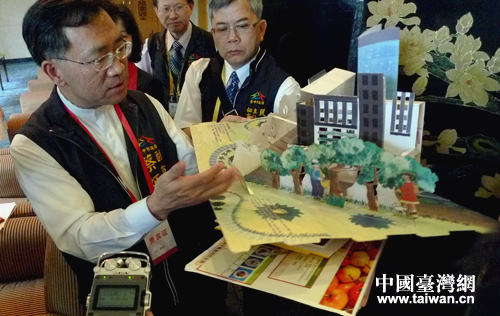 臺(tái)中市副市長(zhǎng)蔡炳坤向記者展示臺(tái)中孩子們親手做的立體百科書。(中國(guó)臺(tái)灣網(wǎng) 高斯斯 攝)