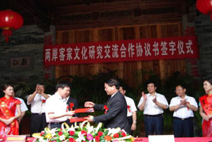 22日上午,兩岸客家文化研究院揭牌剪彩儀式在世界文化遺產(chǎn)永定 “振福樓”舉行。同時(shí),永定兩岸客家文化研究院與臺(tái)灣大學(xué)客家研究中心締結(jié)了交流合作關(guān)系。