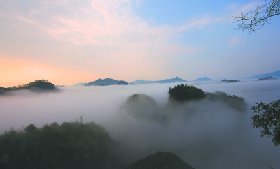 云海是武夷山常見的自然奇觀。云海來時,云窩景區(qū)天游峰云煙迷漫,層巒疊翠,在朝陽交相輝映下,多姿多彩。云霧飄渺,動中有靜,靜中有動,美不勝收。千姿百態(tài)的武夷山群峰在茫茫云海中若隱若現(xiàn),好似人間仙境! 邱汝泉 文/圖