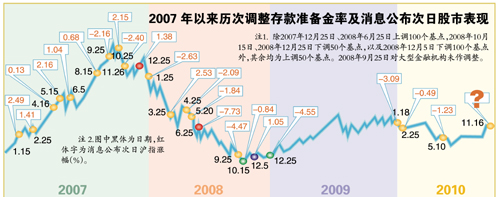 此前,10月11日,央行通知工農(nóng)中建四大國(guó)有商業(yè)銀行及招商、民生兩家股份制銀行,提高上述幾家銀行的存款準(zhǔn)備金率,提高幅度為50個(gè)基點(diǎn),凍結(jié)資金約3000億元。本次調(diào)整存款準(zhǔn)備金凍結(jié)資金的規(guī)模預(yù)計(jì)少于上次。 在10月19日,央行宣布加息,兩次政策出臺(tái)之間僅間隔10天左右。
