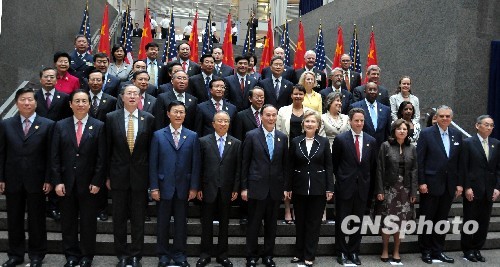首輪中美戰(zhàn)略與經(jīng)濟(jì)對(duì)話7月27日在華盛頓開(kāi)幕。圖為與會(huì)方會(huì)前拍攝“全家福”。 中新社發(fā) 李靜 攝