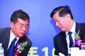 17日,中國證監(jiān)會主席尚福林(右)與中國社會科學(xué)院副院長李揚(左)在論壇上親切交談 本版圖片均為本報記者 史麗 攝