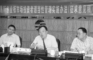 據(jù)上海證券報報道:深交所副總經(jīng)理周明昨日在主持《深圳證券交易所創(chuàng)業(yè)板市場投資者適當性管理實施辦法(征求意見稿)》座談會時表示,創(chuàng)業(yè)板入市要求設置理念主要是保護投資者利益,深交所下一步還將加大力度進行投資者教育。