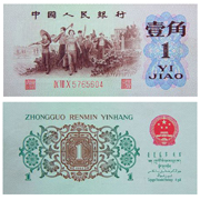 壹分、貳分、伍分、壹角、貳角、伍角和拾圓券的7個(gè)版別的正面,分別采用了汽車(chē)、飛機(jī)、輪船、拖拉機(jī)、火車(chē)、水電站和工農(nóng)業(yè)生產(chǎn)豐收的圖景;伍圓券的正面是各民族大團(tuán)結(jié)的圖案;叁圓券、貳圓券及紅、黑兩版壹圓券中的圖案分別是井岡山龍?jiān)纯跇、延安寶塔山和天安門(mén)。