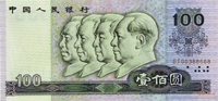 一點(diǎn):100元的正面是新中國(guó)四位重要領(lǐng)導(dǎo)人毛澤東、劉少奇、周恩來(lái)、朱德的側(cè)面頭像,表達(dá)了對(duì)黨領(lǐng)導(dǎo)的中國(guó)革命和建設(shè)光輝歷史的充分肯定;50元券的正面是工人、農(nóng)民和知識(shí)分子并列的頭像,強(qiáng)調(diào)知識(shí)分子屬于工人階級(jí)的一部分,這是思想認(rèn)識(shí)上的一項(xiàng)重大的撥亂反正;10元券以下票面的正面都是具有代表性的民族人物的頭像。