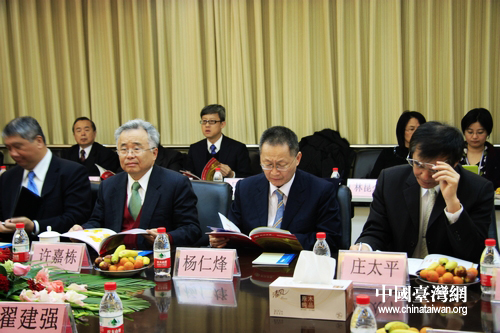 在河北銀行總部辦公室內(nèi),以許嘉棟為首的“臺灣金融團”成員們對河北銀行充滿興趣。(中國臺灣網(wǎng) 馬迪 攝)