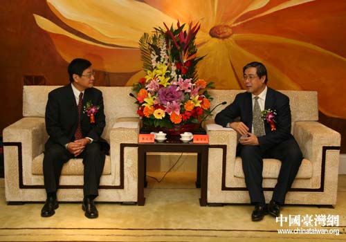 天津市委常委、副市長崔津渡會見臺灣國泰人壽保險(xiǎn)股份有限公司總經(jīng)理張發(fā)得。(圖片來源:天津市臺辦)
