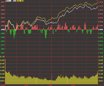 股指大幅反彈,至收盤,滬指報(bào)2930.80點(diǎn),漲1.19%;深成指報(bào)12865.75點(diǎn),漲1.26%。