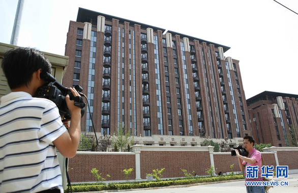2011年5月25日北京出現(xiàn)單價(jià)30萬樓盤5月25日,媒體記者在北京東釣魚臺(tái)家園小區(qū)門前拍攝采訪。分析人士指出,在嚴(yán)厲調(diào)控之下,北京豪宅價(jià)格逆勢(shì)異常高漲,十分值得關(guān)注。新華社發(fā)(李方宇 攝)