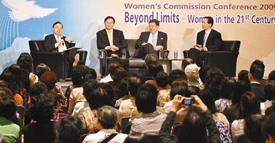 婦女事務(wù)委員會(huì)26日舉行名為“承擔(dān)、超越——21世紀(jì)女性”的研討會(huì),邀請了特首曾蔭權(quán)、中聯(lián)辦主任彭清華及中華全國婦女聯(lián)合會(huì)副主席、書記處書記陳秀榕主禮,陳秀榕和香港勞工及福利局局長張建宗分別發(fā)表專題演講。