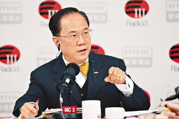 據(jù)悉,有關(guān)應(yīng)對(duì)樓巿問(wèn)題由曾蔭權(quán)親自過(guò)問(wèn),并由財(cái)政司司長(zhǎng)曾俊華及金管局總裁陳德霖合力處理。消息透露,日前陳德霖召見(jiàn)多位香港銀行高層,提出2000萬(wàn)元豪宅以上的按揭要由70%降至60%,也是曾蔭權(quán)授意下進(jìn)行,目的是壓抑過(guò)于瘋狂的豪宅巿場(chǎng),同時(shí)還要防止金融風(fēng)險(xiǎn)。