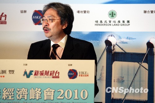 十二月十四日下午,“香港經(jīng)濟(jì)峰會(huì)二0一0” 假香港四季酒店舉行,香港特區(qū)政府財(cái)政司司長(zhǎng)曾俊華出席并在“峰會(huì)午餐會(huì)”發(fā)表重要演講。 中新社發(fā) 鄭祚聲 攝