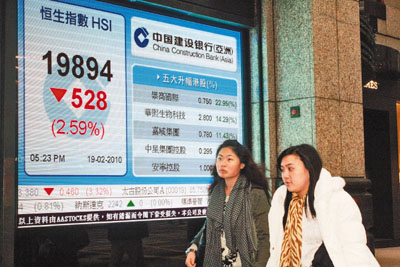 中新網(wǎng)2月20日電 據(jù)香港《文匯報(bào)》報(bào)道,美國突然調(diào)高貼現(xiàn)利率,市場(chǎng)擔(dān)心美國會(huì)提早退市及加息,港股急跌528點(diǎn),失守20000點(diǎn),跌幅達(dá)2.6%,是19日亞太區(qū)股市中表現(xiàn)最差的市場(chǎng)。香港地產(chǎn)股、內(nèi)銀股及資源股成為跌市重災(zāi)區(qū),成交淡靜只有430.7億元。