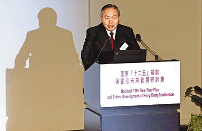 鄭新立在港參加“十二五”規(guī)劃研討會(huì)。 香港文匯報(bào)圖 彭子文 攝
