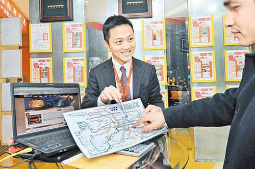 臺當局打房,不過在精華地段的搶手物件仍未受影響。圖為房屋中介經(jīng)理人向民眾介紹待售房屋。圖片來源:臺灣《中國時報》