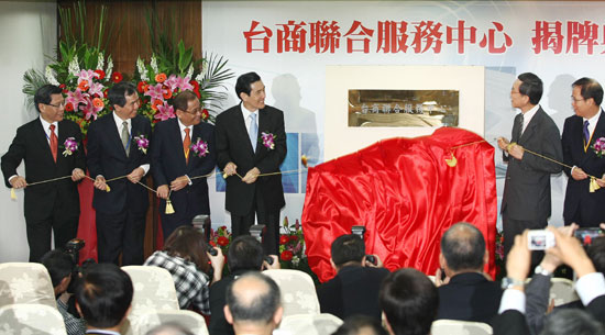 臺商聯(lián)合服務(wù)中心今天舉辦成立記者會,由馬英九、“經(jīng)濟部長”施顏祥、“世界臺灣商會聯(lián)合總會”總會長盧起箴及臺灣同胞投資企業(yè)聯(lián)誼會副會長葉惠德等人親自揭牌。