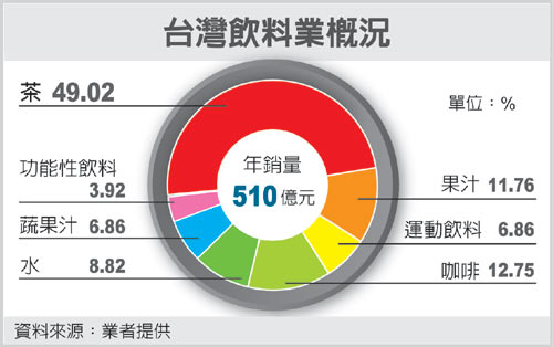 根據(jù)統(tǒng)計(jì),臺(tái)灣島內(nèi)飲料市場(chǎng)近年來(lái)已經(jīng)呈現(xiàn)飽和,過(guò)去三年每年復(fù)合年增率僅2%至3%,去年整體規(guī)模僅510億元新臺(tái)幣,其中又以茶飲料超過(guò)240 億元新臺(tái)幣規(guī)模最大,果汁規(guī)模約60億元新臺(tái)幣、運(yùn)動(dòng)飲料約35億元新臺(tái)幣。這次塑化劑風(fēng)暴全被掃到,包括統(tǒng)一等業(yè)者銷售將烏云罩頂。