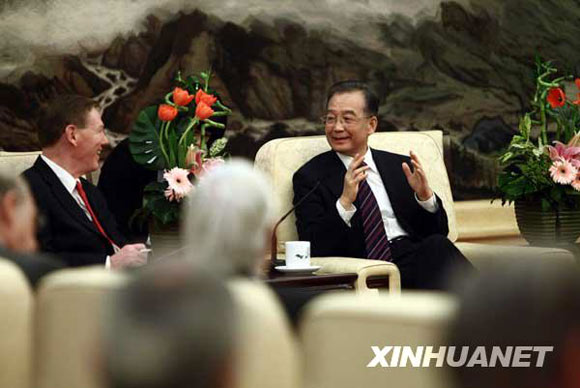 新華網(wǎng)北京3月22日電(記者趙承、譚晶晶)國務(wù)院總理溫家寶22日下午在人民大會堂會見了出席中國發(fā)展高層論壇2010年會的境外代表,就世界經(jīng)濟形勢,尤其是中國繼續(xù)應(yīng)對國際金融危機、保持經(jīng)濟平穩(wěn)較快發(fā)展、加快轉(zhuǎn)變經(jīng)濟發(fā)展方式以及推動國際經(jīng)濟金融合作等問題,與他們進行深入交談。