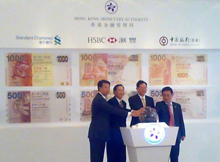 金管局總裁陳德霖發(fā)言時表示,為減低鈔票被偽冒的風(fēng)險,金管局與香港三間發(fā)鈔銀行于2007年中開始,經(jīng)過3年的研發(fā)設(shè)計了一套全新的鈔票系列,在籌備的過程中,他們采用了最尖端防偽設(shè)設(shè)及雕版印刷技術(shù),大大加強(qiáng)新鈔的防偽功能,及容易辨認(rèn)的優(yōu)點。