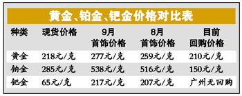更“離譜”的是鈀金首飾,現(xiàn)貨鈀金價格目前報65元/克,而廣州市內(nèi)鈀金首飾的零售價卻達到了217元/克,比原材料價格上升2.3倍,有“物非所值”的嫌疑。