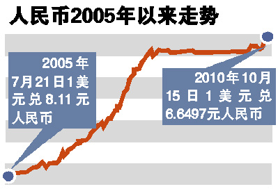 10月15日,美元對人民幣中間價為6.6497元。至此,從6月19日人民銀行宣布進一步深化人民幣匯率改革以來,人民幣對美元已升值2.6%。而美聯(lián)儲主席伯南克日前表示,由于通脹太低和失業(yè)率居高不下,可能有必要采取進一步的貨幣刺激措施。這也意味著美元維持弱勢和非美元貨幣升值暫時不會結(jié)束,因此,人民幣未來走勢還難以預(yù)料。
