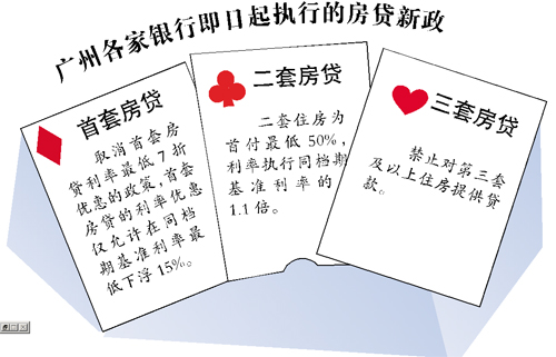 昨日,記者證實,廣州各家銀行已從銀監(jiān)會獲得口頭通知,即日起取消首套房貸利率最低7折優(yōu)惠的政策,首套房貸的利率優(yōu)惠最低下浮15%。