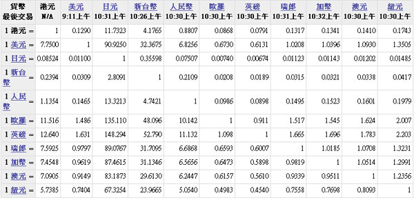 主要貨幣匯率