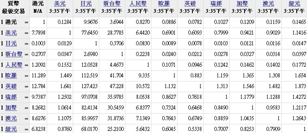 主要貨幣匯率
