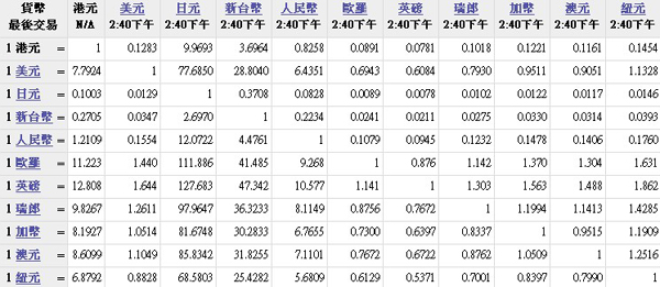 主要貨幣匯率