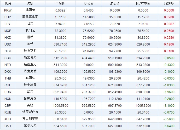 人民幣匯率(2012-10-19)
