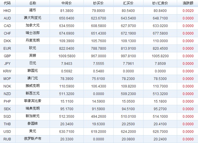 人民幣匯率(2012-10-19)