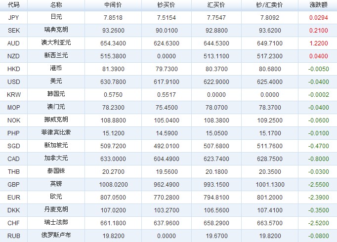 人民幣匯率(2012-10-23)
