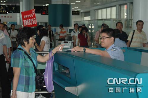 邊檢民警正在為旅客辦理通關(guān)手續(xù)